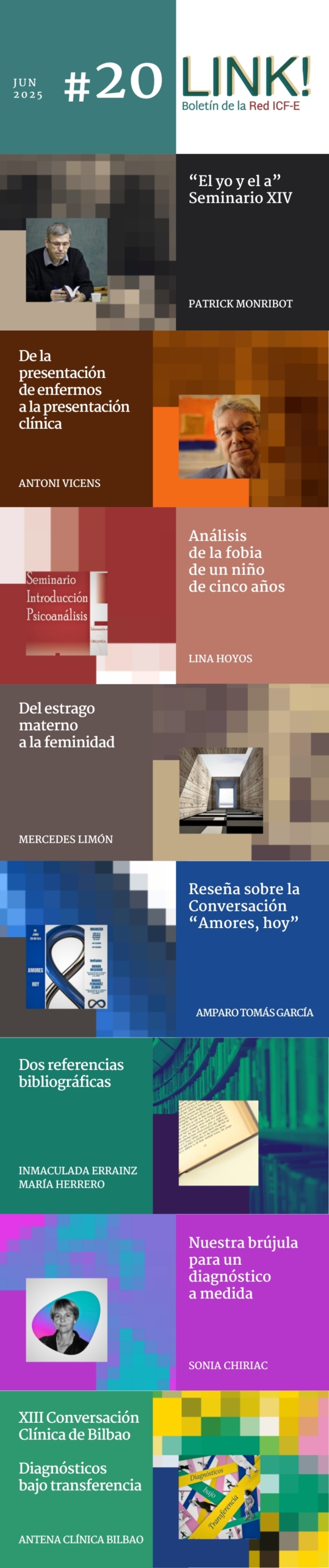 Link! Ha cumplido 10 años, y les recordamos que todos los artículos y noticias publicadas están en esta misma web, ya que al final de cada número pueden acceder a los números anteriores. Era uno de nuestros objetivos: prolongar la “vida” de estas investigaciones sobre psicoanálisis, en un tiempo de rápido consumo.